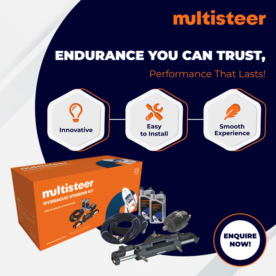 Experience the Explorer 350 Hydraulic boat steering kit by Multisteer, engineered for superior handling with a single outboard for smooth navigation.